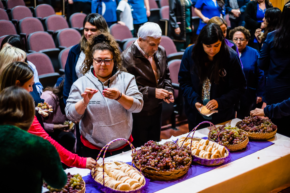 Una vez finalizada la jornada lectiva, se llevó a cabo una instancia de reflexión y bendición del pan y la uva para los funcionarios del colegio. Directivos, administrativos, profesores y asistentes de educación se unieron en esta celebración, reafirmando el compromiso de la comunidad educativa con los valores cristianos y la unidad en la fe.